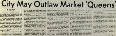 1977 Article Discussing the “Market Queens” and the City’s Crackdown on activity in the Market. From The Roanoke Times & World News, September 18, 1977. Courtesy of the Virginia Room, Roanoke Public Library.