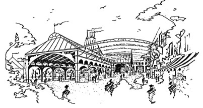 Image from the Roanoke Design ’79 Catalogue showing the potential new Market Square. Moore Grove Harper Architects. Virginia Room, Roanoke Public Library.