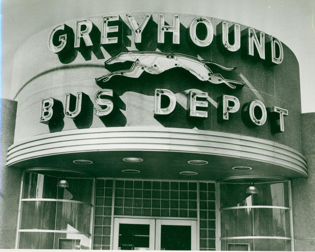 Photograph of the Greyhound Bus Station, c. 1955, which was a frequent gay cruising site formerly located on the corner of what is now Williamson Road and Bullitt Avenue. Virginia Room, Roanoke Public Libraries. George C. Davis Photographic Records.