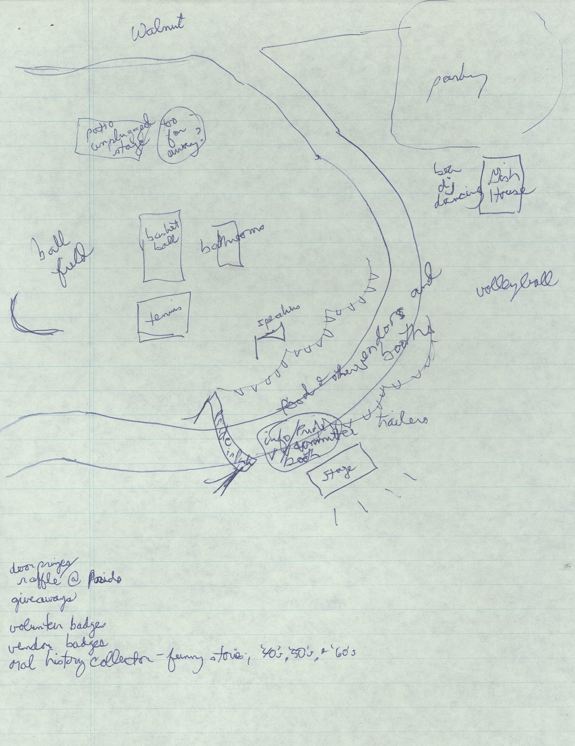 Map of Pride in the Park VII at Highland Park, September 1996. Edward F. “Gerry” Jennings Jr. Papers, LGBTQ History Collection, Virginia Room, Roanoke Public Library.