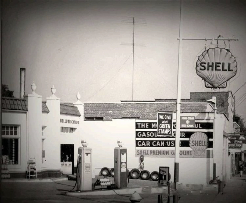 View of the Trade Winds looking north on Franklin Road from Elm Avenue in the 1950s. Someone posted this photograph in an online local history Facebook group. The Trade Winds sign can be seen in the far right of this photograph.